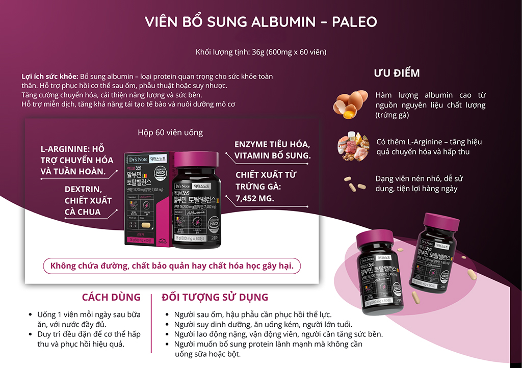 Bổ sung Albumin: giúp phục hồi cơ thể, nuôi dưỡng tế bào và mô cơ.