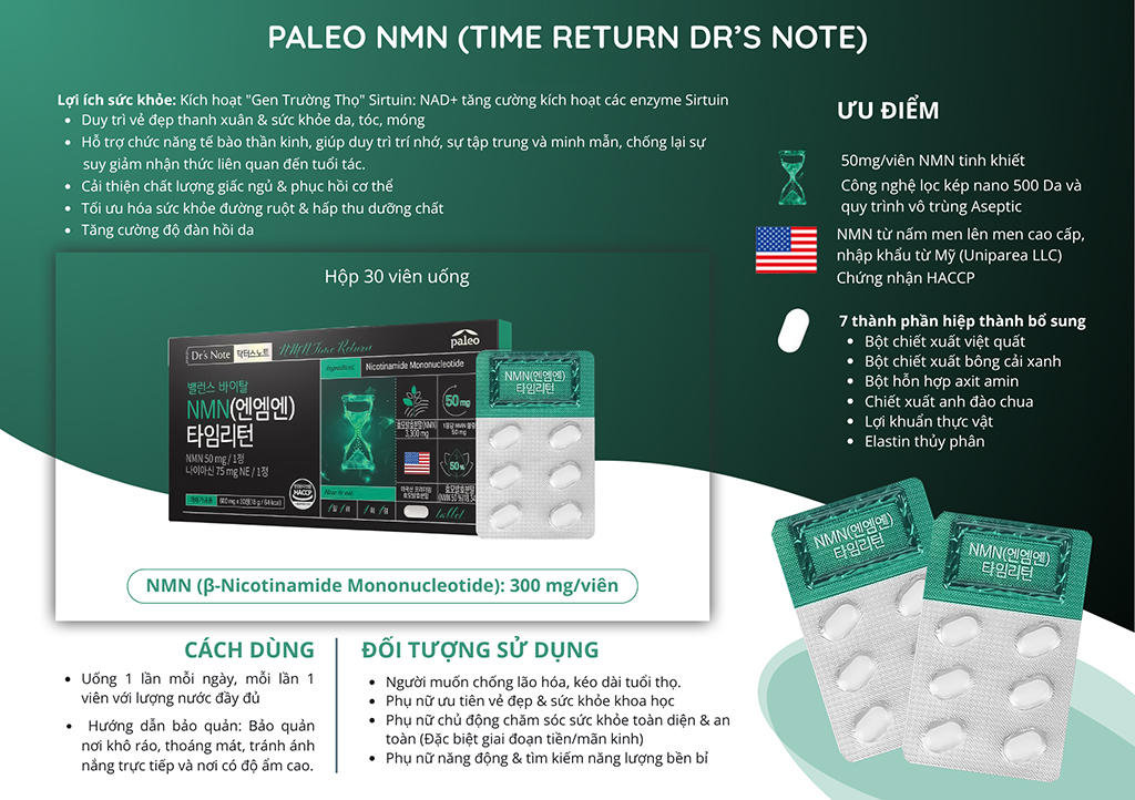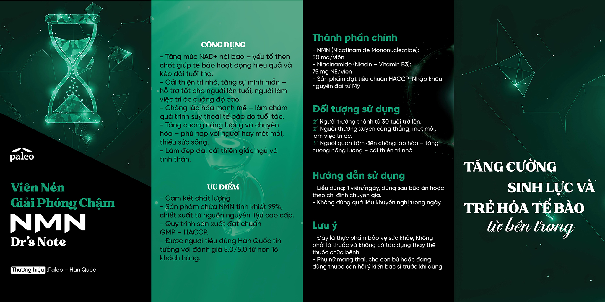 ➡️ NMN Dr’s Note – Giải pháp trẻ hóa và tái tạo tế bào từ bên trong, chuẩn quốc tế, hiệu quả vượt trội.
